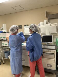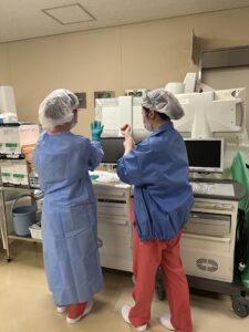 初めての器械出しをするスタッフ。